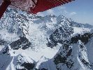 Rechts im Bild die "Landepiste" am Southeast Fork Kahiltna Glacier mit dem Basislager. |
