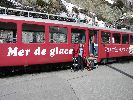 Am Ende des Mer de Glace - im Hintergrund links die Grandes Jorasse -bringt uns die Zahnradbahn von Monten Verse zurück nach Chamonix. |