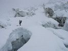 Der Weg über das Grand Plateau wird aus Sicherheitsgründen nur mehr bei der Abfahrt gewählt, da man hier akut der Gefahr der Seracs des Grand Montees ausgesetzt ist. |