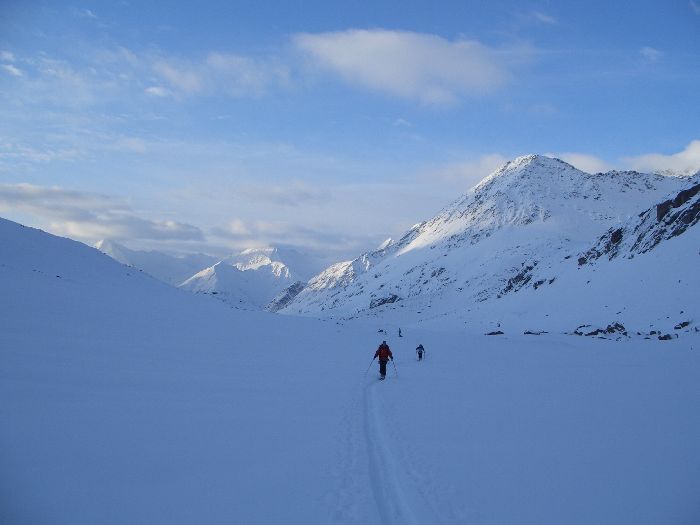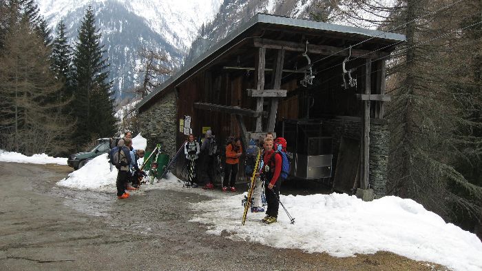 … und schon sind wir am Skidepot - ein kurzer Aufstieg zu Fuß … |