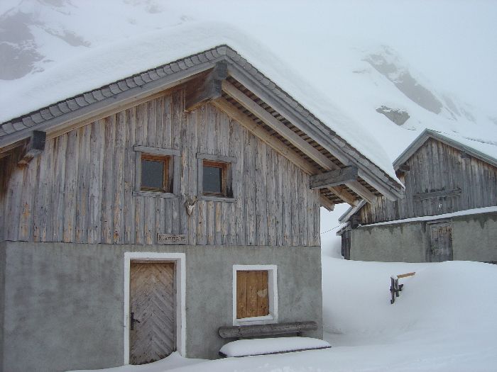 … vorbei an der Frader Alm 1621 m steigen wir hoch zum Hochleger 1948 m, der Regen geht in Schnee über - der Wind legt zu und es wird richtig ungemütlich ... |